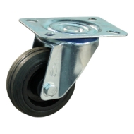 Protempo Transportwiel (zwenk) met plaatbevestiging met stalen gaffel, wiel met PP velg, standaard zwarte rubberen band Serie 01-13